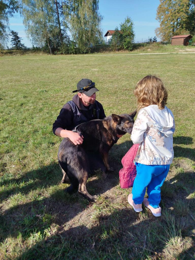 Beseda s hasiči, ukázka práce psovoda