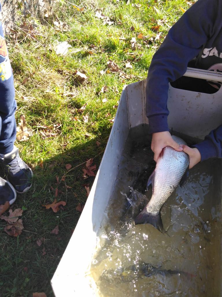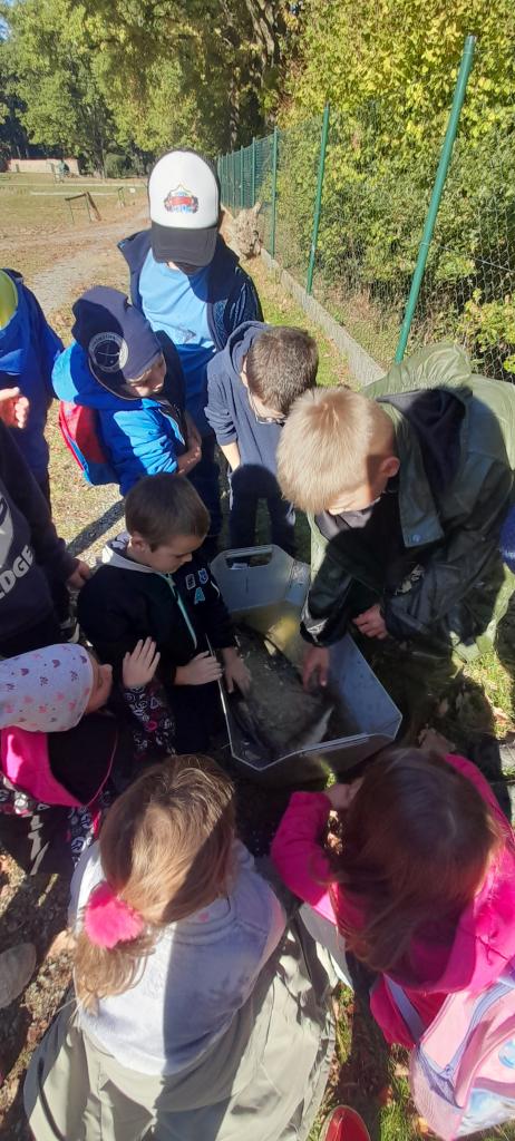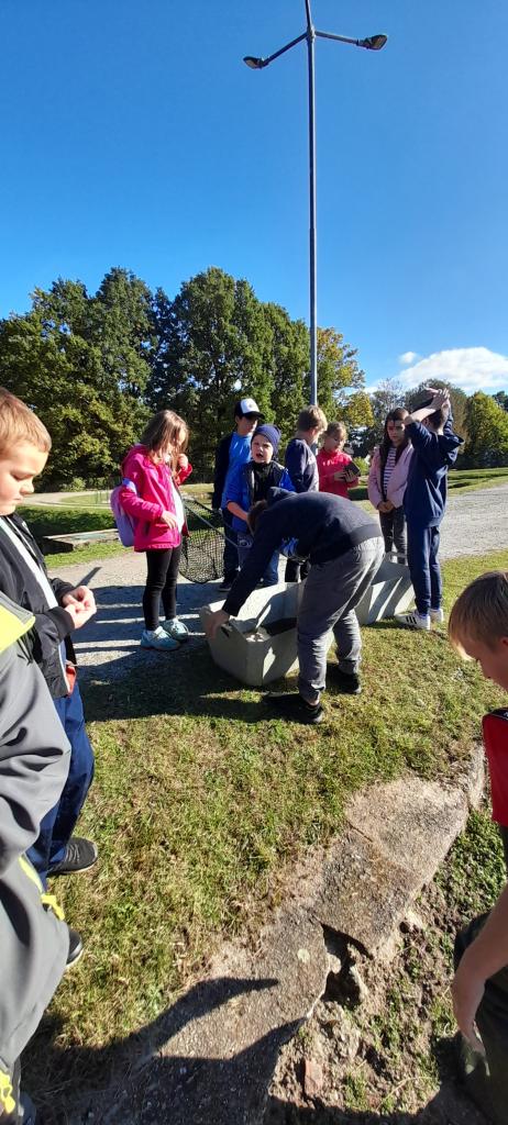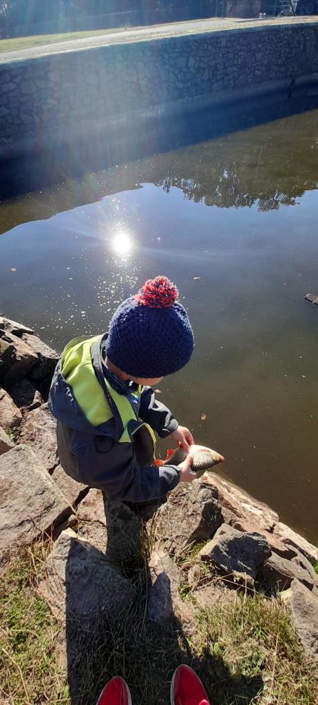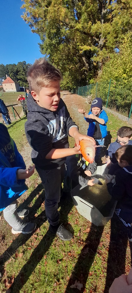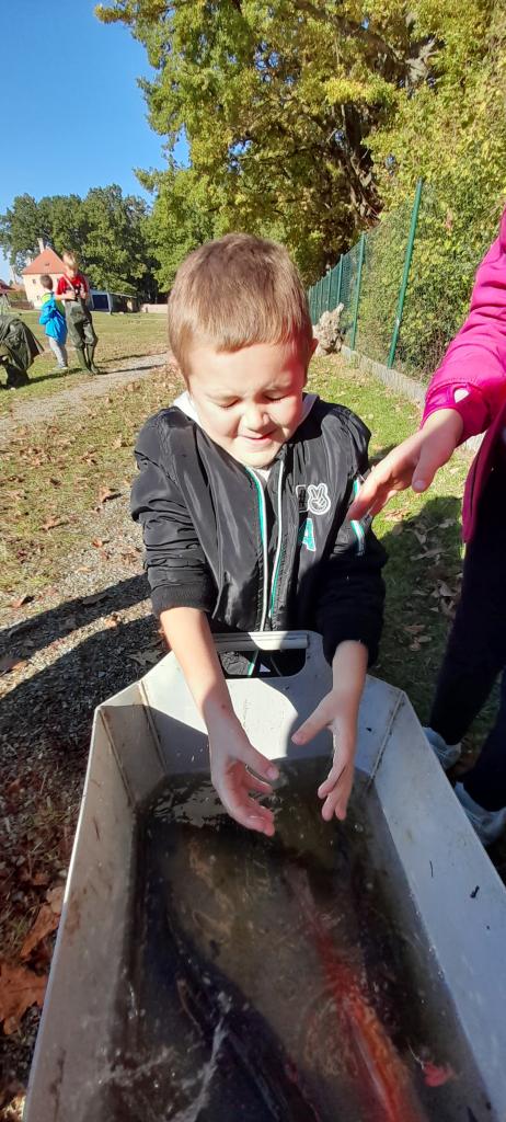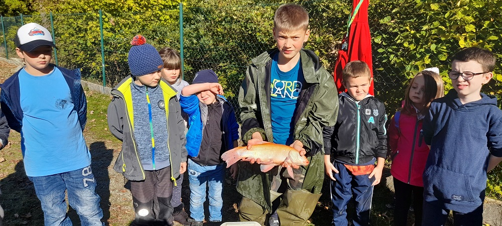Procházkou jsme došli až na sádky, kde pro nás kluci z páté třídy měli připravené ryby. Děti si je mohly prohlédnout a něco nového se o nich dozvědět. Nakonec děti viděly i bílého sumce (180cm a 35kg). To byl zážitek!