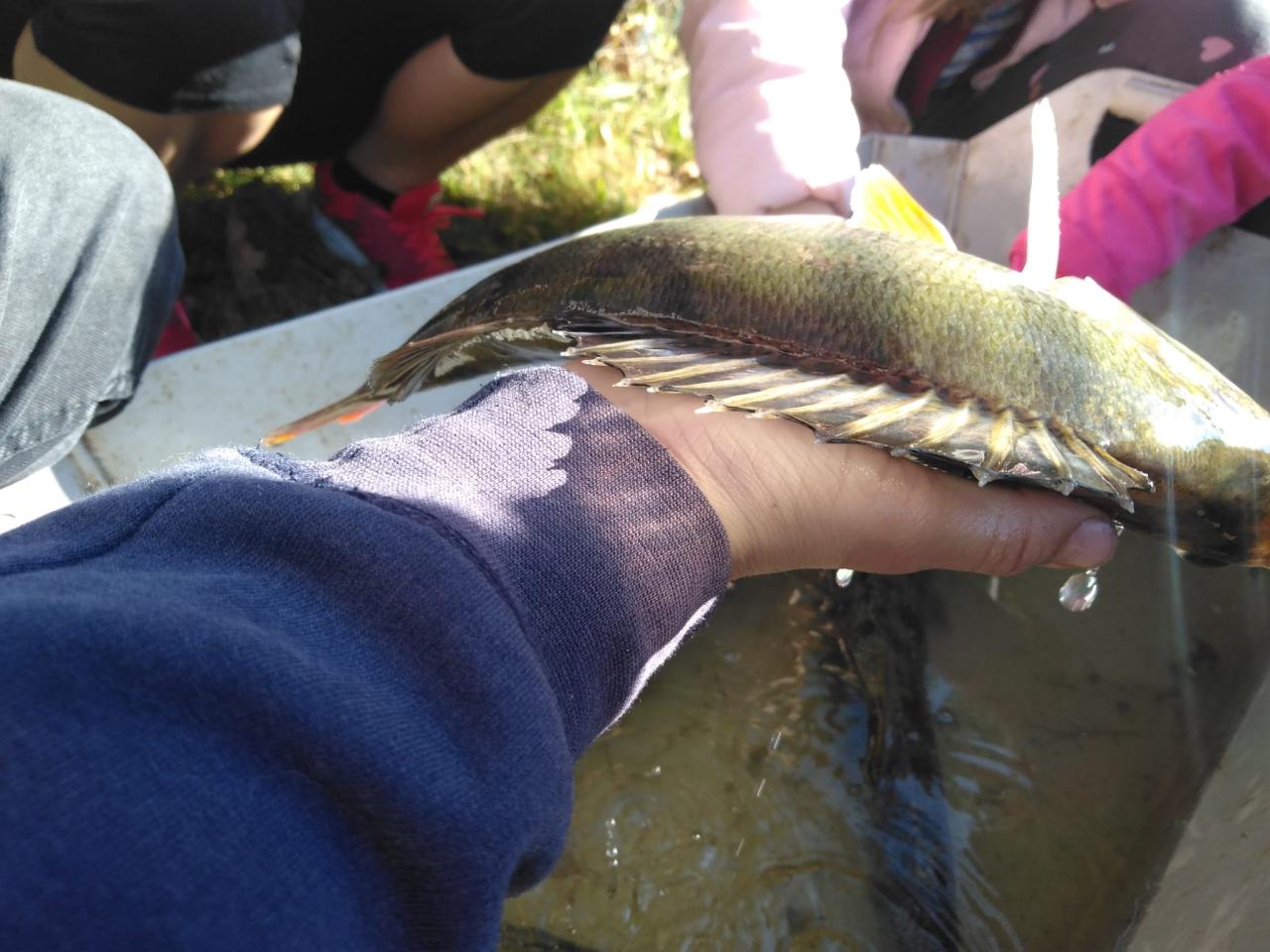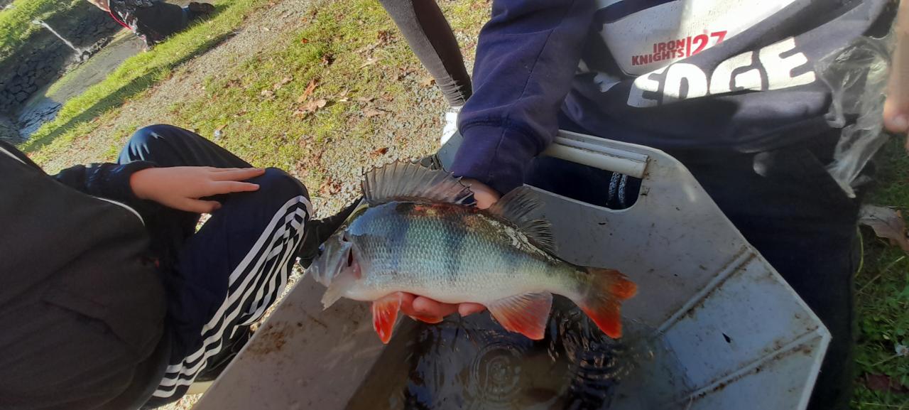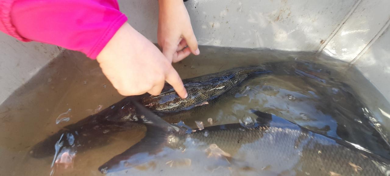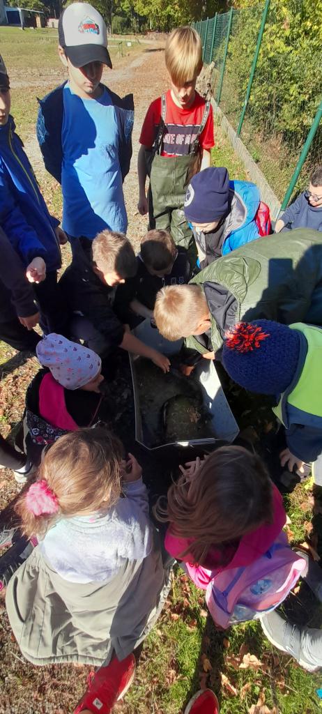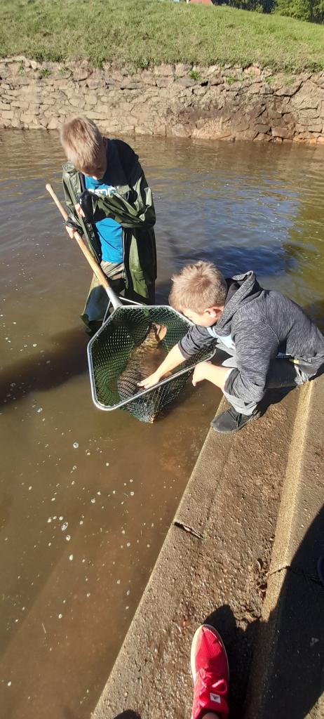Procházkou jsme došli až na sádky, kde pro nás kluci z páté třídy měli připravené ryby. Děti si je mohly prohlédnout a něco nového se o nich dozvědět. Nakonec děti viděly i bílého sumce (180cm a 35kg). To byl zážitek!