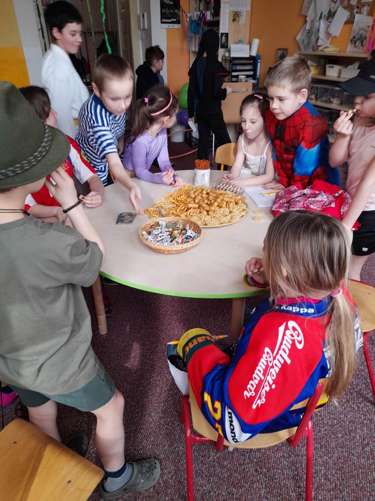 Karneval v družině. S dětmi jsme si užily, nejen pár soutěží, ale i tancování a hodování jídla, které si připravily při pracovním vyučování.