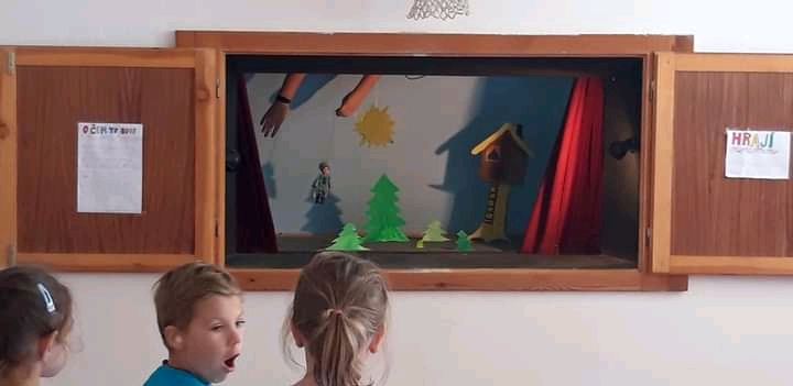 Dnes na nás ve škole čekalo velké překvapení. Maruška se Sárinkou si pro mladší děti připravily a zahrály loutkové divadlo. Kulisáky a hudební podkreslení hravě zvládli Tom, Máťa a Vojta. Velice vám děkujeme za krásné představení.