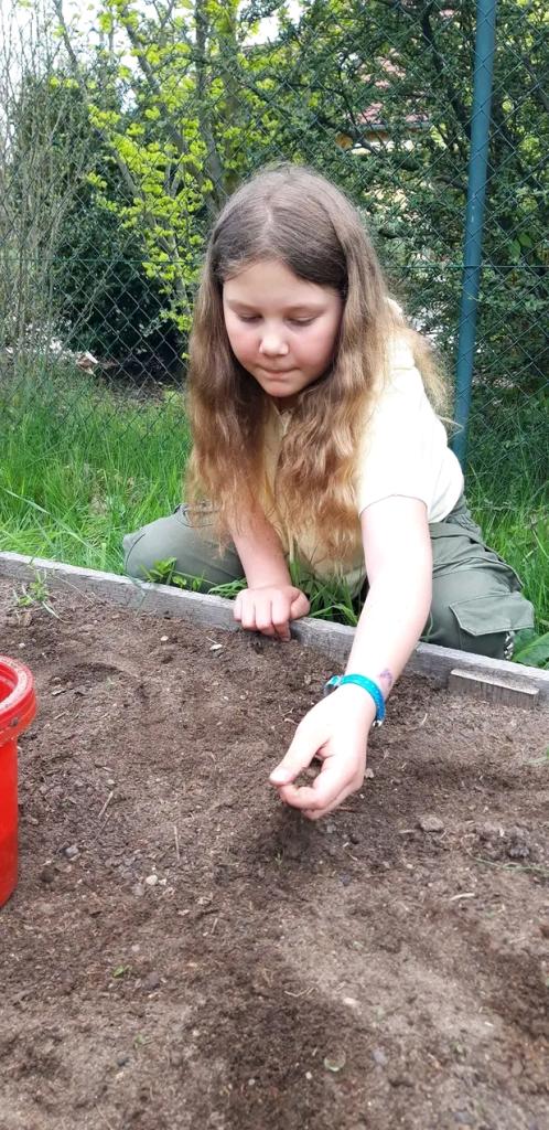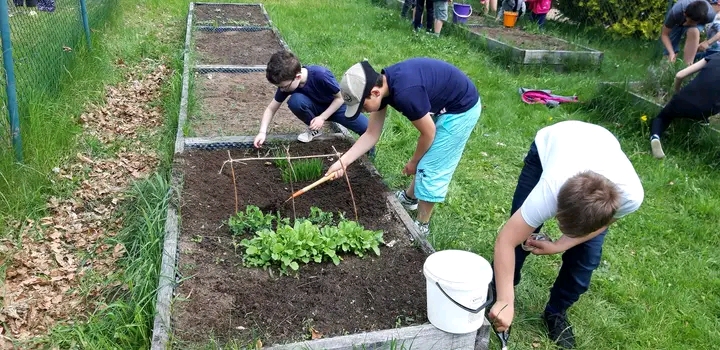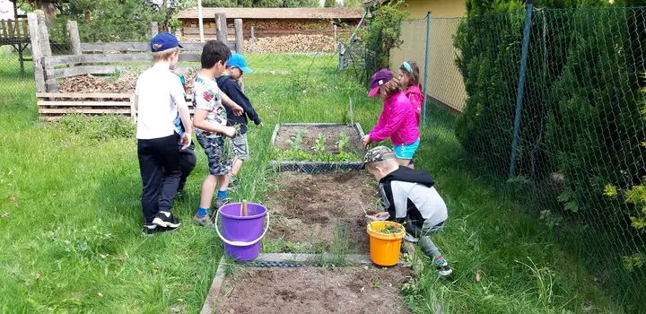 Děti využily krásného počasí a při pracovním vyučování, si vyplely své záhonky, kde už jim hezky rostou ředkvičky a hrášek ...