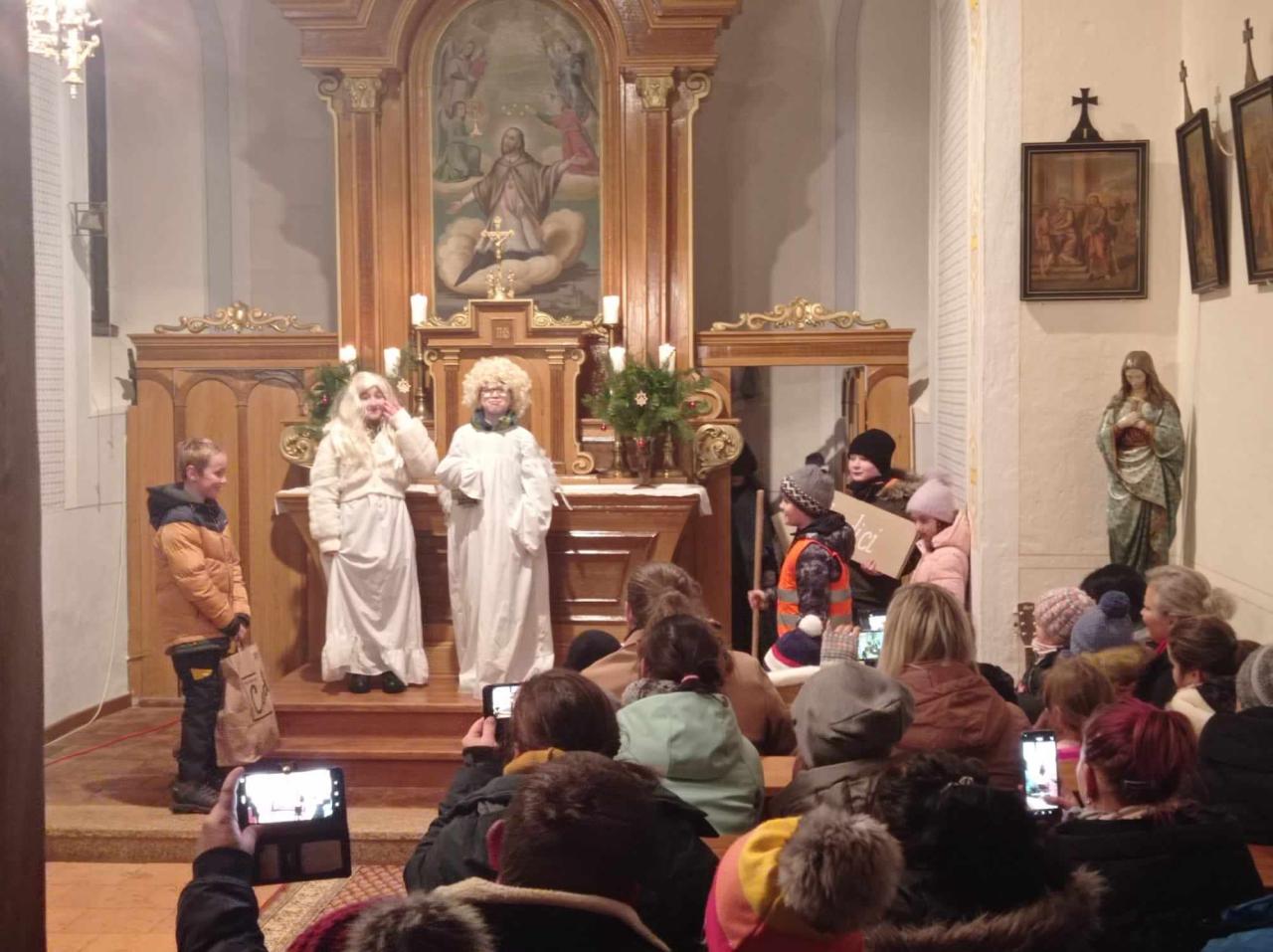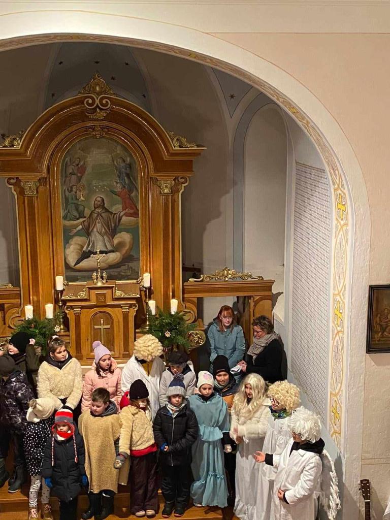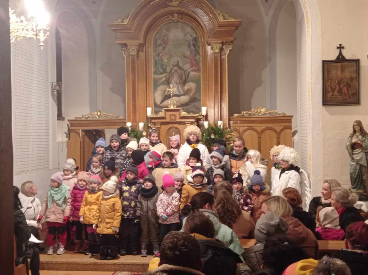 Vánoční vystoupení v kostele a rozsvícení vánočního stromečku.